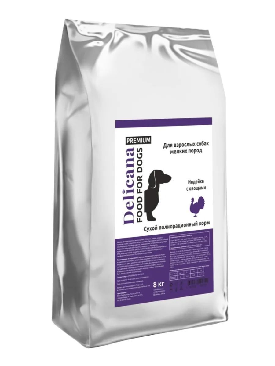 Delicana сух.д/собак мелких пород индейка с овощами 8кг / 1*1
