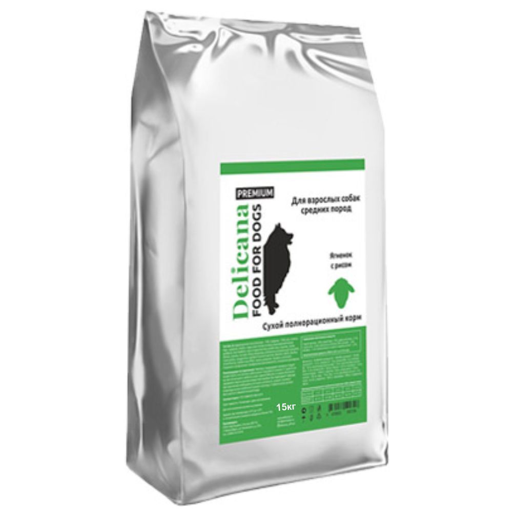 DELICANA СУХОЙ ПОЛНОРАЦИОННЫЙ КОРМ ДЛЯ ВЗРОСЛЫХ СОБАК СРЕДНИХ ПОРОД С ЯГНЕНКОМ И РИСОМ, 15кг