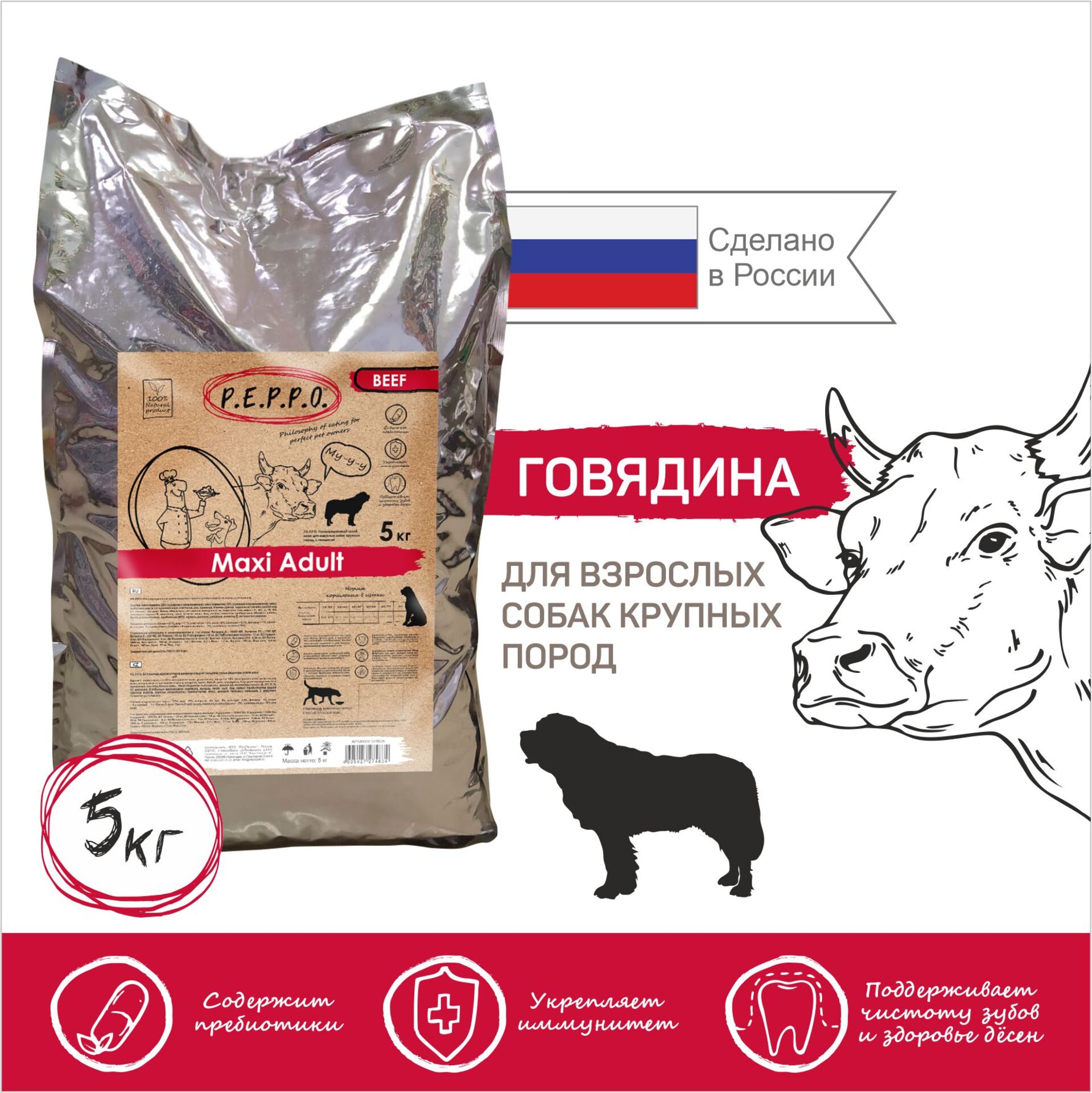 Пеппо, сухой корм для взрослых собак крупных пород, с говядиной.