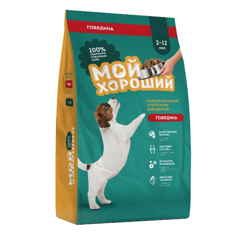 —Мой хороший корм сухой полнорац. для щенков всех пород с говядиной, 10 кг.