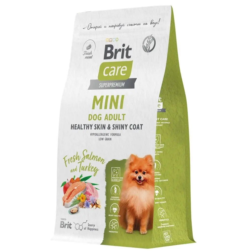 —БРИТ КЕА сухой корм д/собак мини пород 1,5кг лосось и индейка Adult.Healthy Skin&Shiny Coat