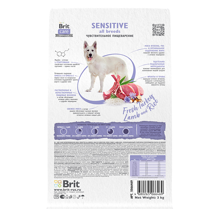 БРИТ КЕА сух корм д/соб ср пород 3кг индейка и ягненок Dog Adult Sensitive Healthy Digestion