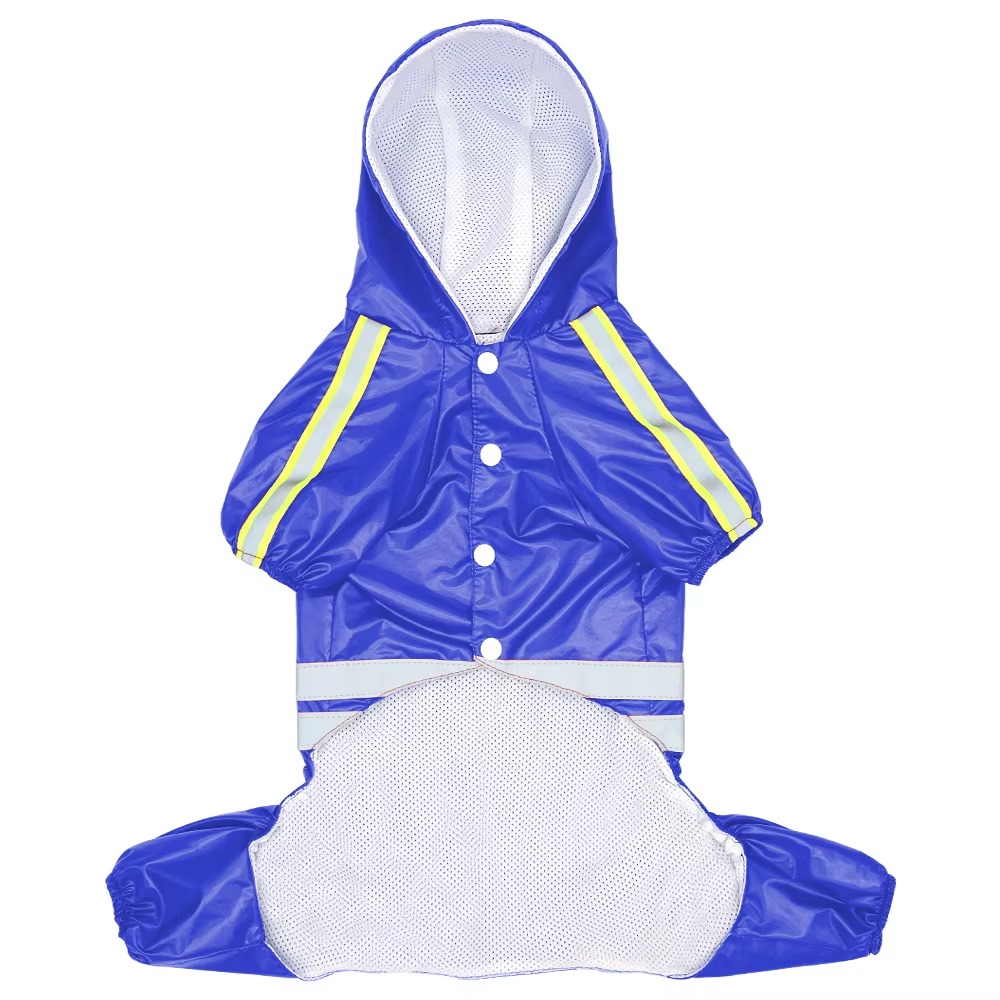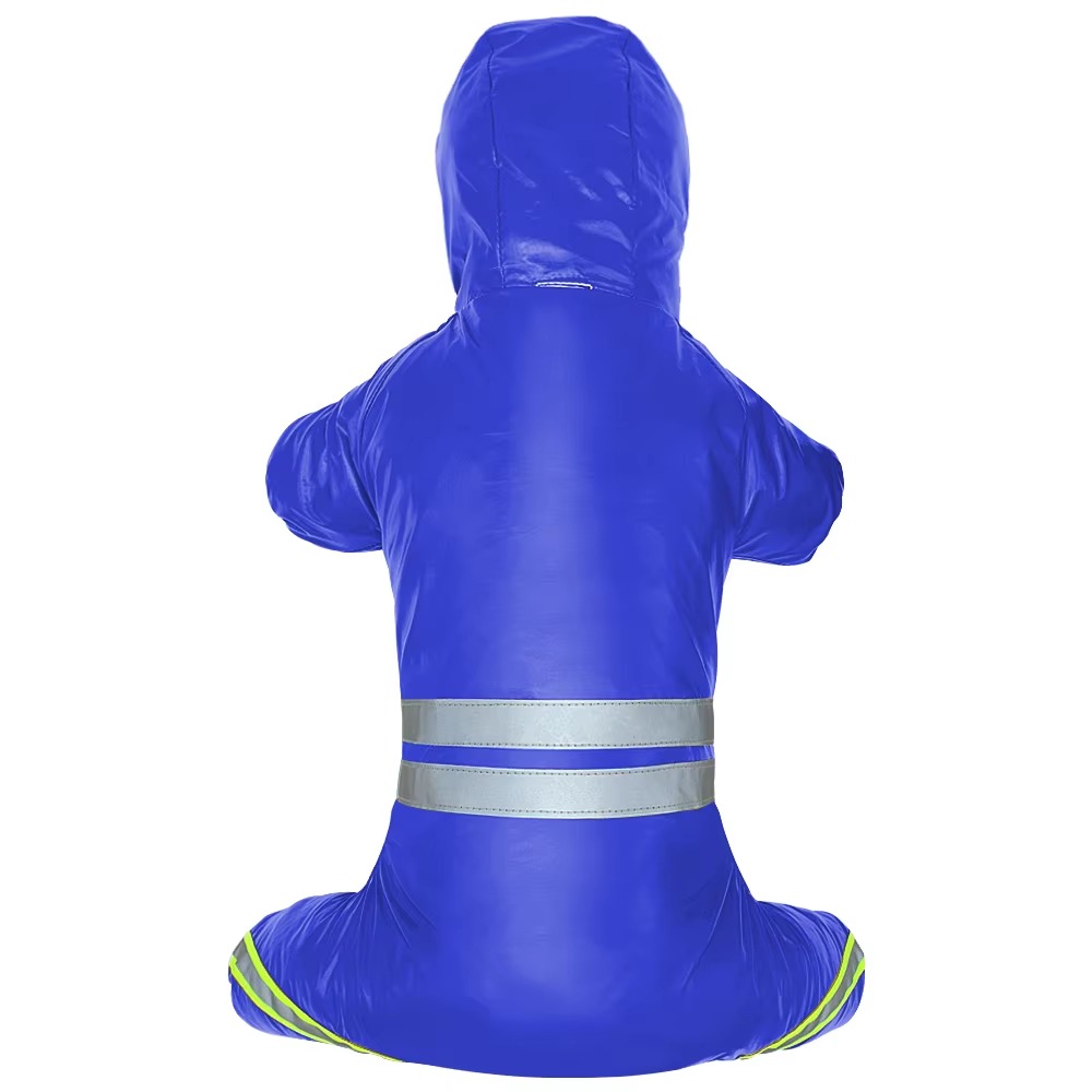 Ярко-синий плащ в спортивном стиле не только привлекает внимание, но и обеспечивает комфорт и надежную защиту. Изготовленный из водонепроницаемого материала, плащ оберегает питомца от дождя и ветра, позволяя наслаждаться прогулками даже в дождливые дни. Оснащенный удобным капюшоном, плащ защищает голову и шею, а светоотражающие элементы по краям изделия обеспечивают дополнительную безопасность, делая вашего питомца заметным даже в темное время суток.
