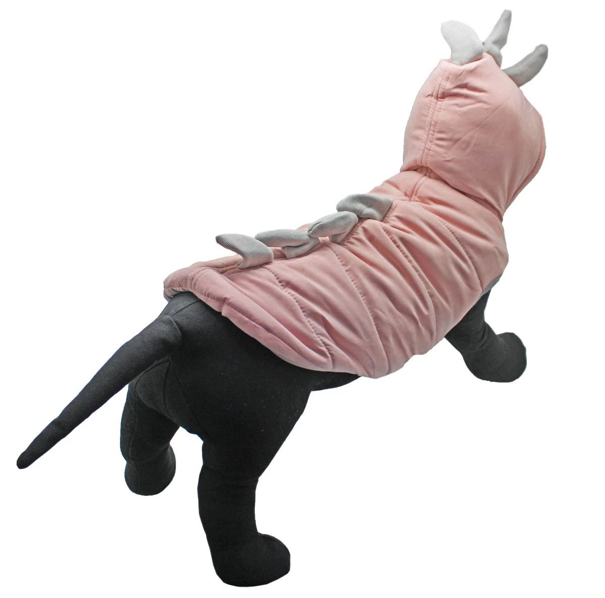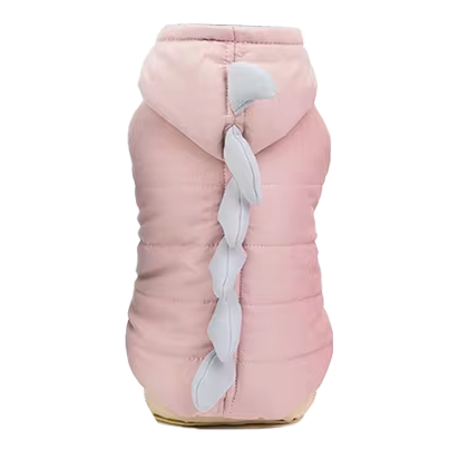 Выполненное в нежном розовом цвете и дополненное светло-серыми шипами вдоль спинки, оно превращает вашего любимца в маленького и очаровательного динозавра, привлекая внимание и вызывая улыбку у прохожих. Забавный стиль идеально подходит для повседневного использования и защищает вашего питомца от холода. Модель оснащена капюшоном, который прикрывает голову и шею, создавая дополнительный уют, а застежки на кнопках позволяют легко надевать и снимать худи, обеспечивая плотное прилегание и комфорт.