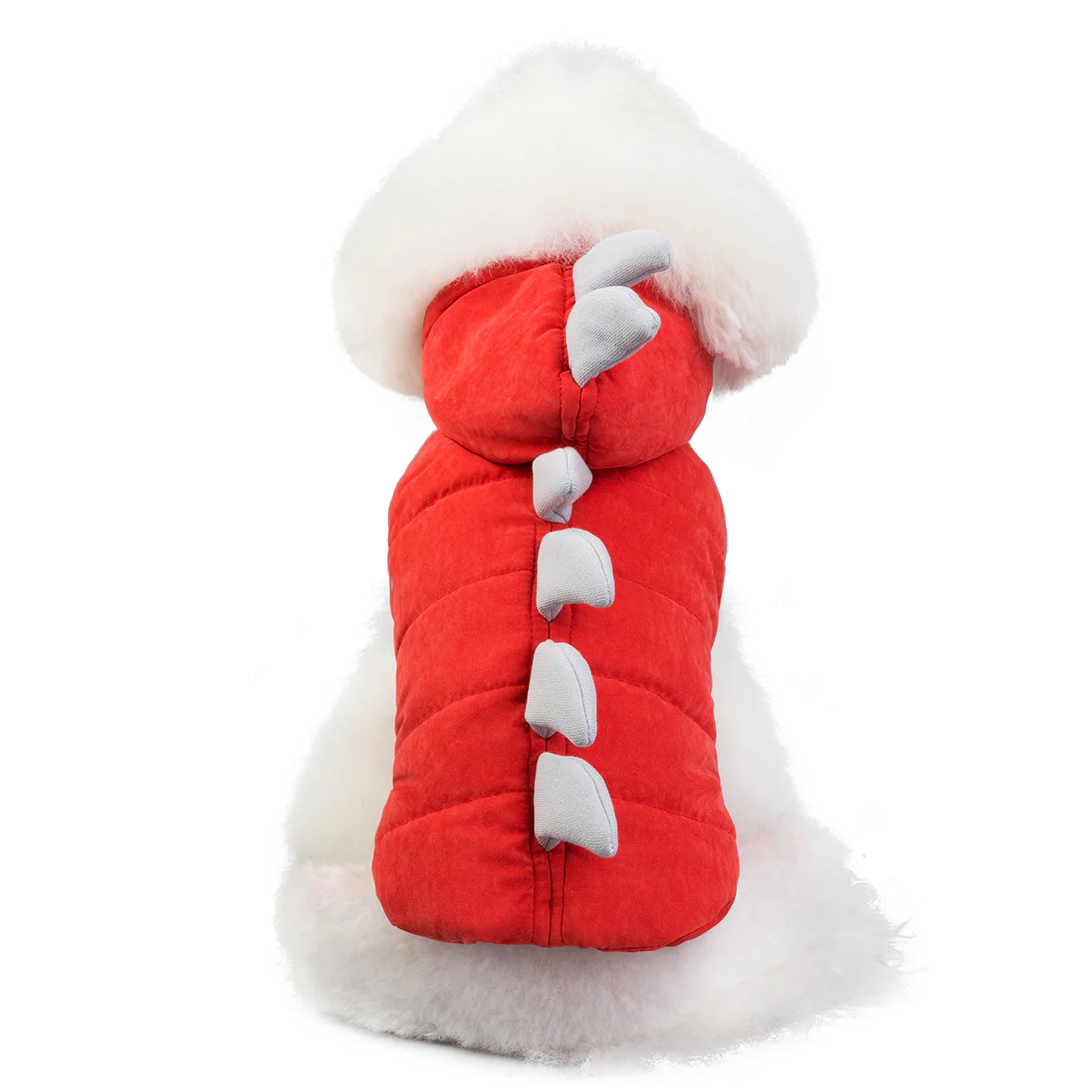 Выполненное в насыщенном красном цвете, худи украшено светло-серыми шипами вдоль спинки, создавая забавный образ маленького динозавра, который точно не останется незамеченным на прогулке. Такое худи подойдет для прохладной погоды. Капюшон дополнительно защищает голову и шею от ветра, а удобные застежки на кнопках позволяют быстро надеть худи, обеспечивая плотную посадку без стеснения движений.