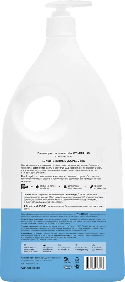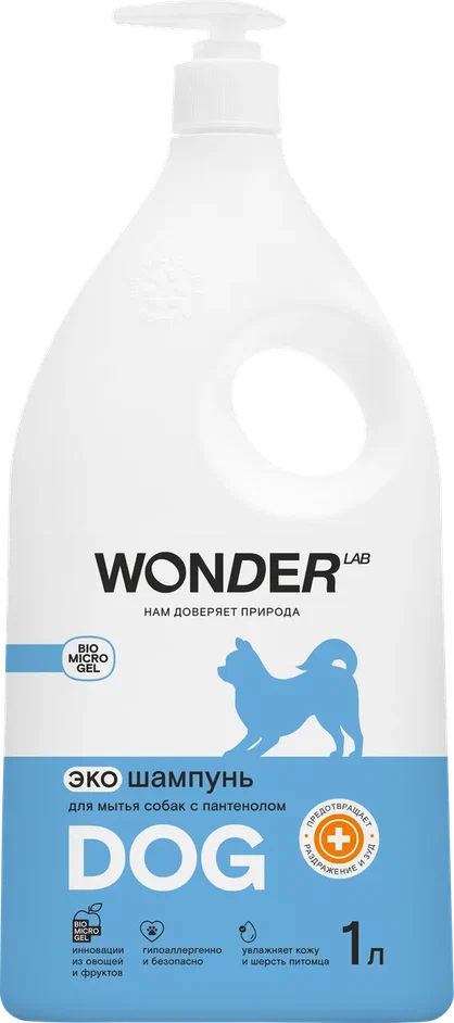 Благодаря пантенолу в составе, экошампунь питает кожу питомцев, способствует заживлению микроповреждений, увлажняет шерсть и делает ее блестящей.