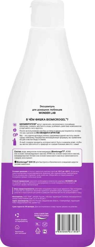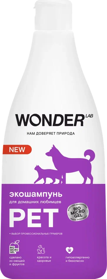 Шампунь не оставляет посторонних запахов на шерсти собаки и обладает нейтральным ароматом, не вызывает аллергических реакций. Экошампунь WONDER LAB одобрен профессиональными грумерами. Шампунем также можно мыть и других питомцев, например, мини-пигов.