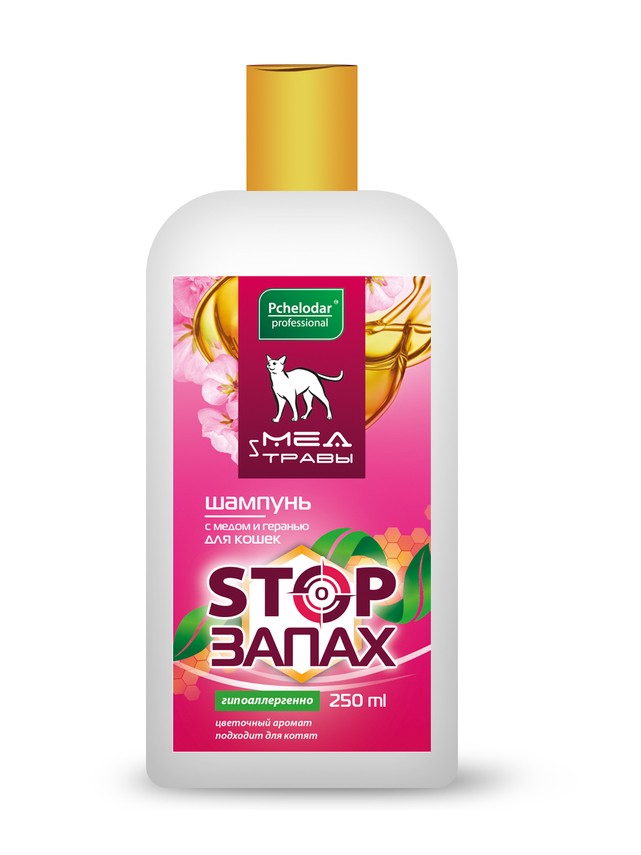 —Шампунь с мёдом и геранью для кошек 250мл СТОП ЗАПАХ