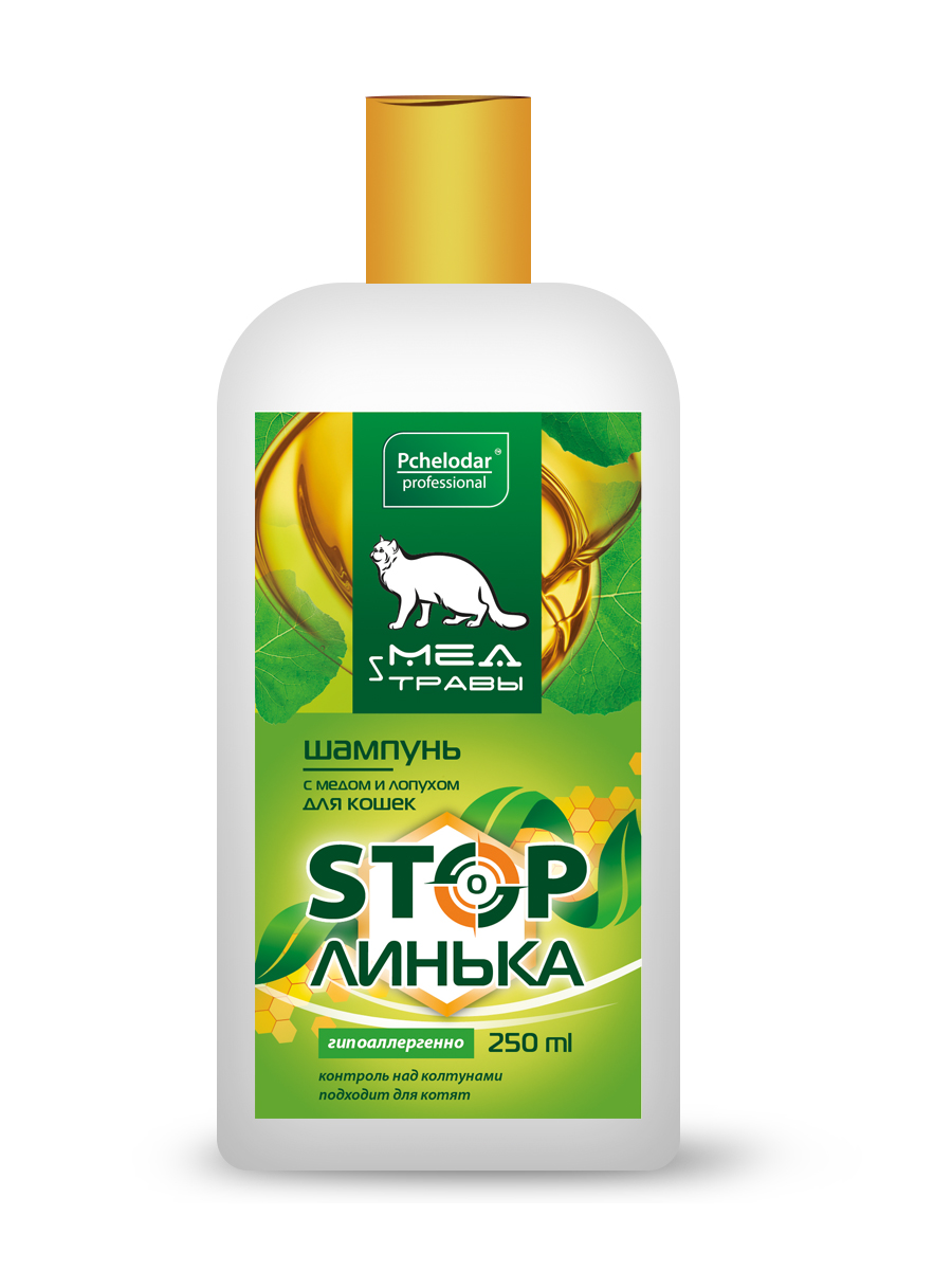 Шампунь СТОП ЛИНЬКА с мёдом и лопухом для кошек 250мл