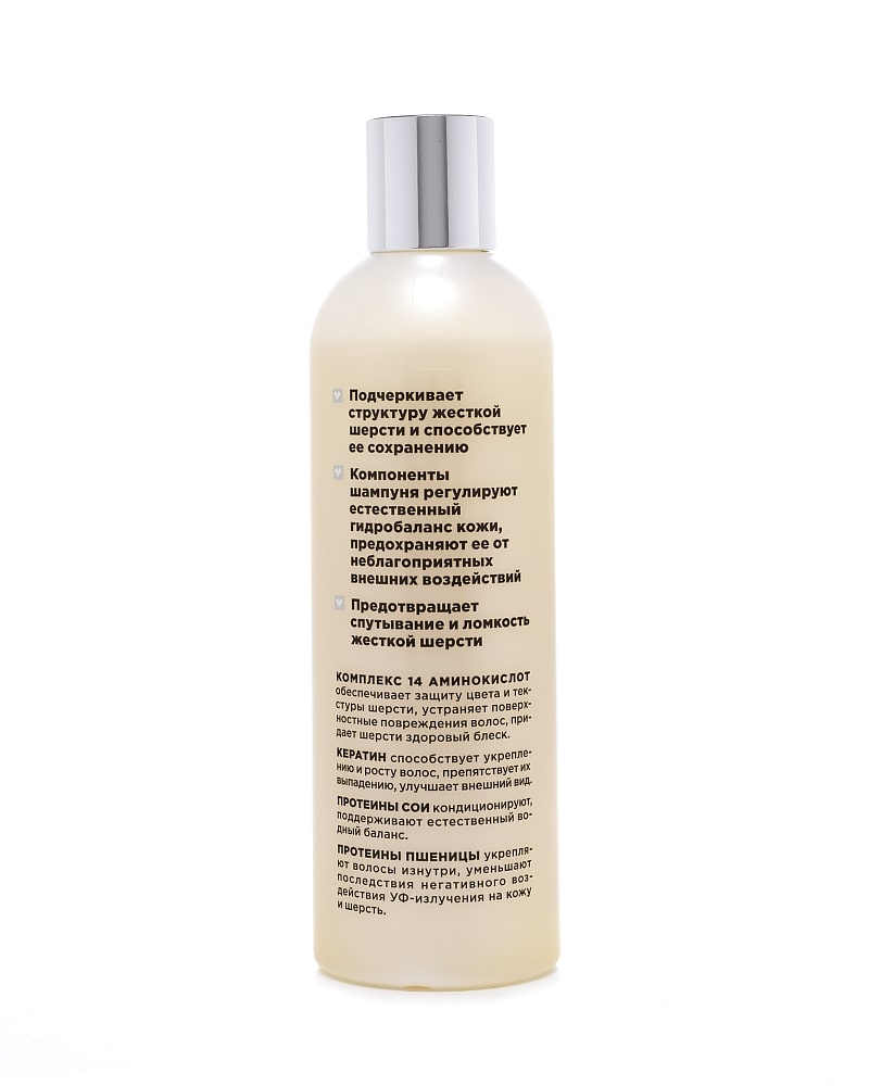 Придает волосам силу и энергию, восстанавливает, укрепляет и защищает, придает блеск шерсти. Восстанавливает поврежденные волосы, уменьшает ломкость, повышает сопротивляемость волос механическим воздействиям. Восстанавливает структуру тонких и ослабленных волос, делает их визуально толще. Шампунь «Элита» для жесткошерстных пород собак подходит для повседневного ухода.