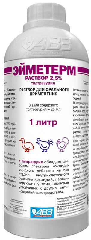 Эйметерм раствор 2,5% 1л  для лечения и профил. кокцидиоза у с/х птиц100мл РЕЦЕПТ