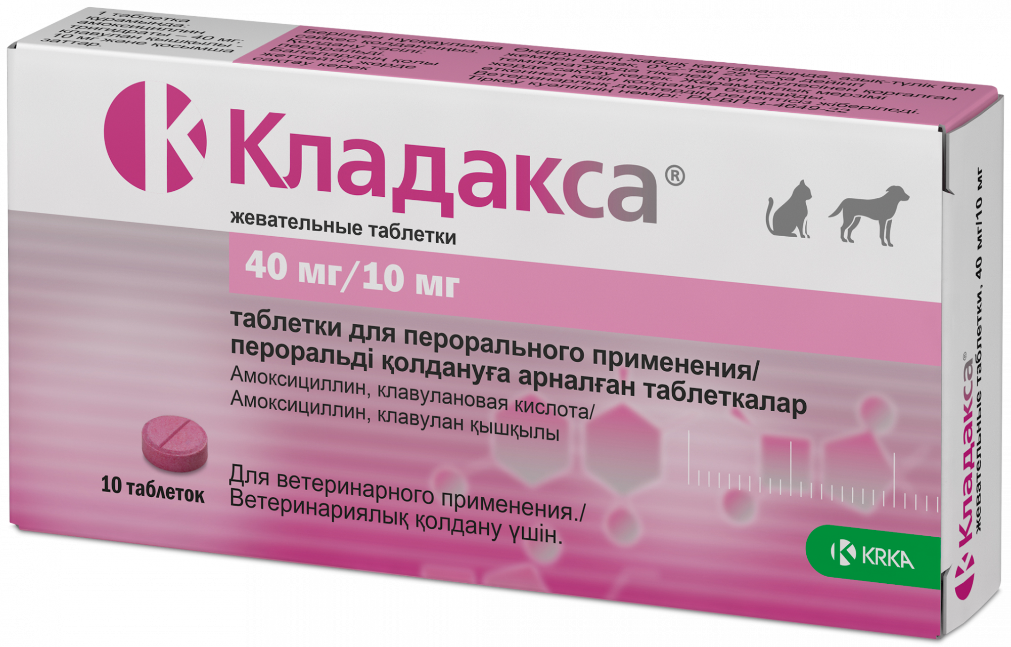 Кладакса® жевательные таблетки являются комбинированным антибактериальным препаратом, содержащим амоксициллин и клавулановую кислоту. Применяются для лечения различных бактериальных инфекций у собак и кошек, включая:
