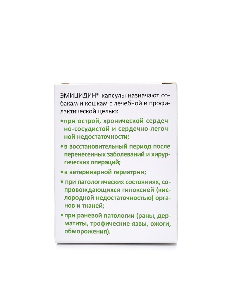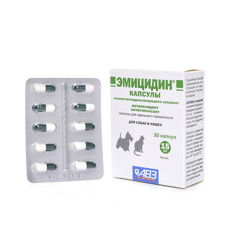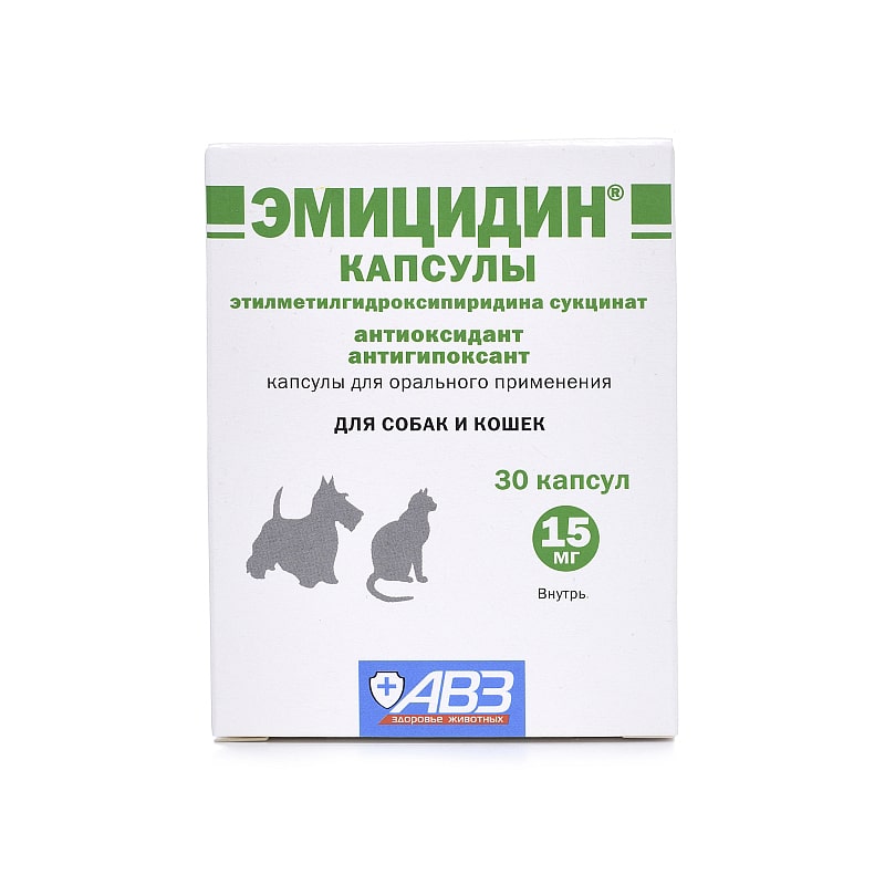 Эмицидин капсулы в одной желатиновой капсуле содержит 15 или 50 мг этилметилгидроксипиридина сукцината.