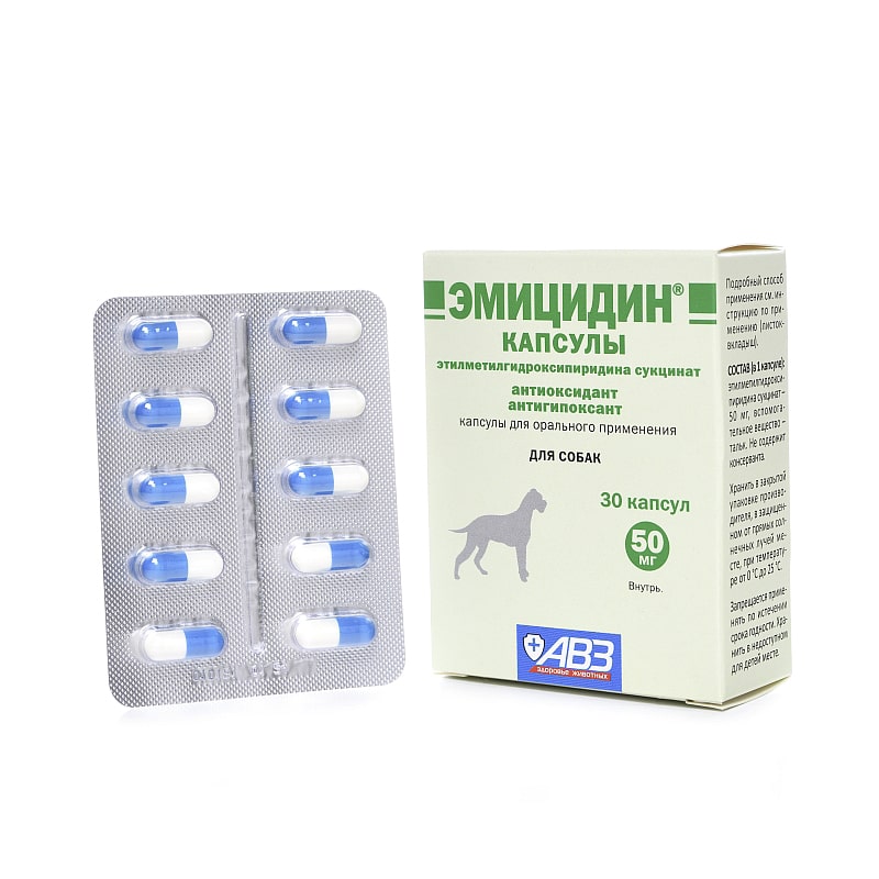 Эмицидин капсулы в одной желатиновой капсуле содержит 15 или 50 мг этилметилгидроксипиридина сукцината.