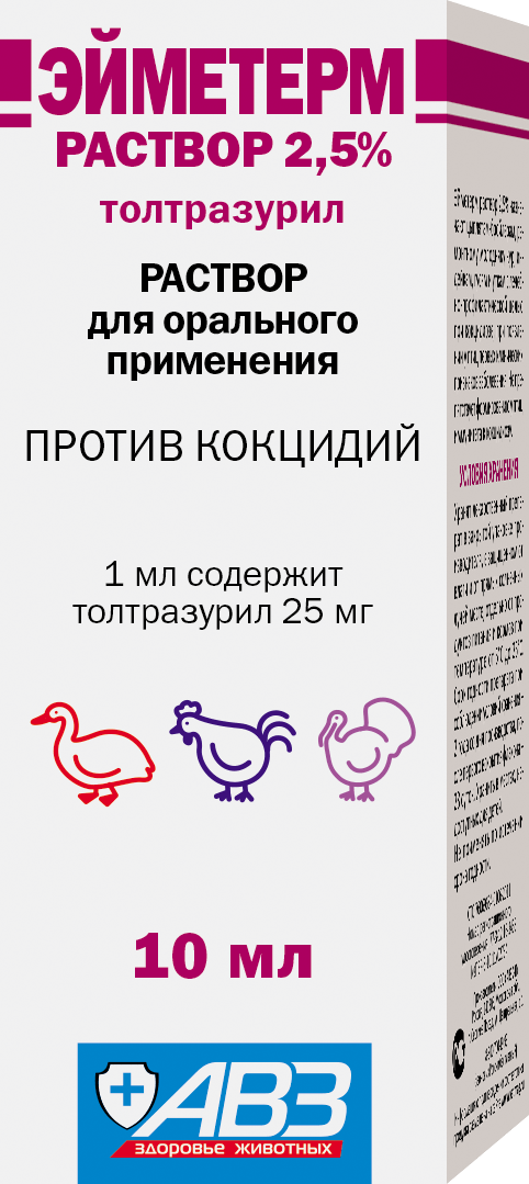—Эйметерм раствор 2,5% 10мл для лечения и профилактики кокцидиоза у с/х птиц РЕЦЕПТ