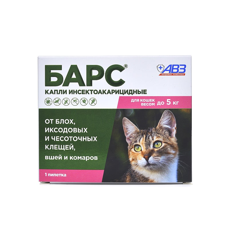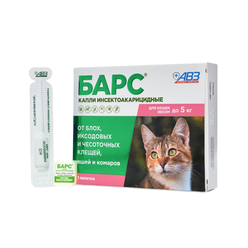 Барс капли для кошек до 5кг инсектоакарицидные (1пип. по 0,5мл)