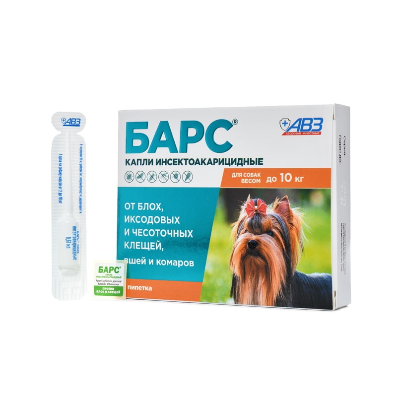 Барс капли для собак до 10 кг против блох и клещей 1*0,67мл