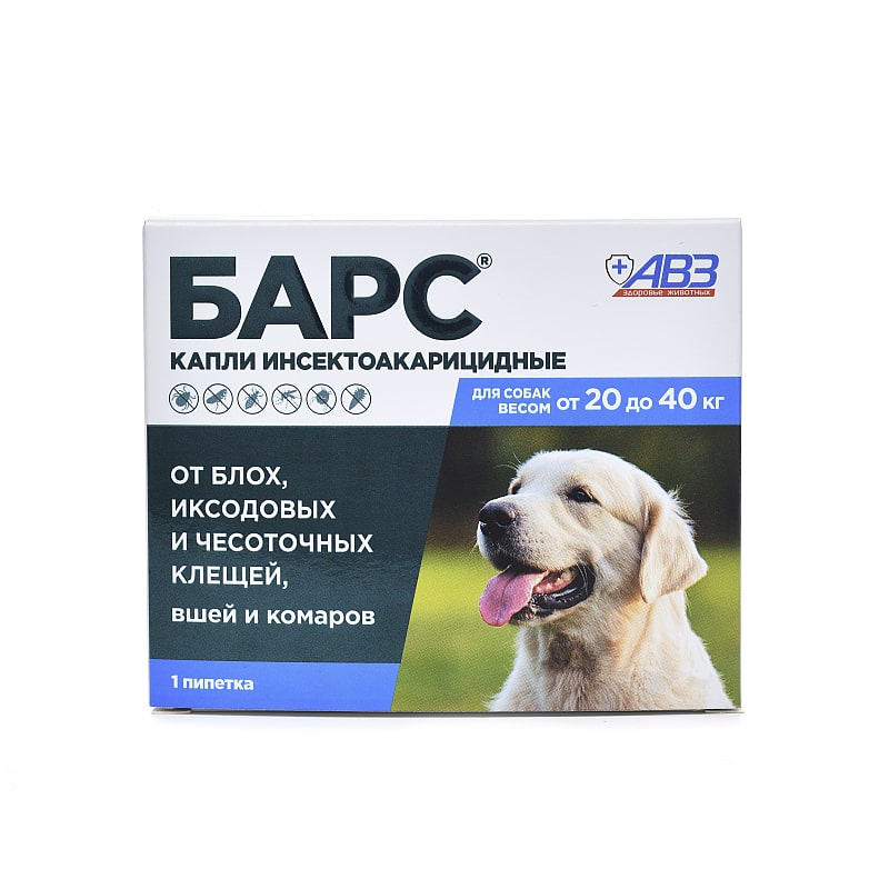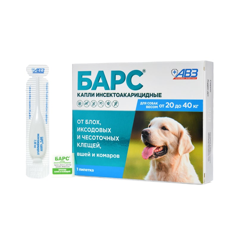 —Барс капли для собак от 20-40 кг против блох и клещей 1*2,68мл