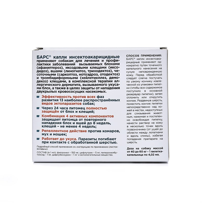 —Барс капли для собак от 40-60 кг против блох и клещей 1*4,02мл
