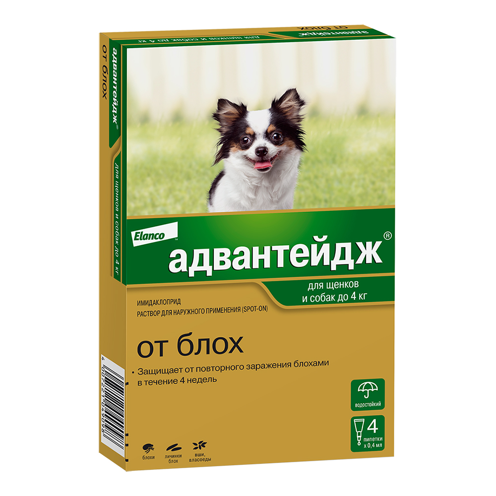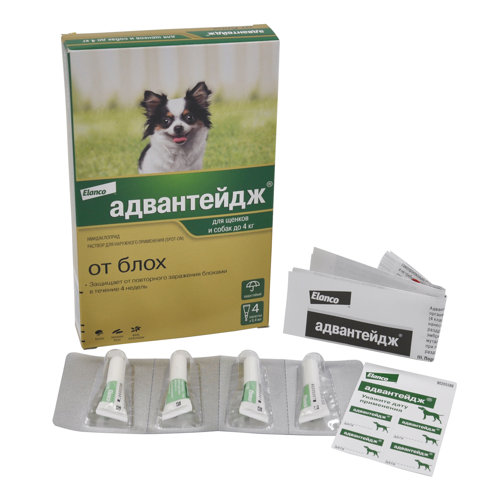 Адвантейдж® помогает защитить собак от блох, их укусов, снижая риск передачи переносимых ими заболеваний. Капли от блох для собак Адвантейдж® содержат действующее вещество имидаклоприд, которое начинает действовать на блох уже в течение 3-5 минут после контакта.