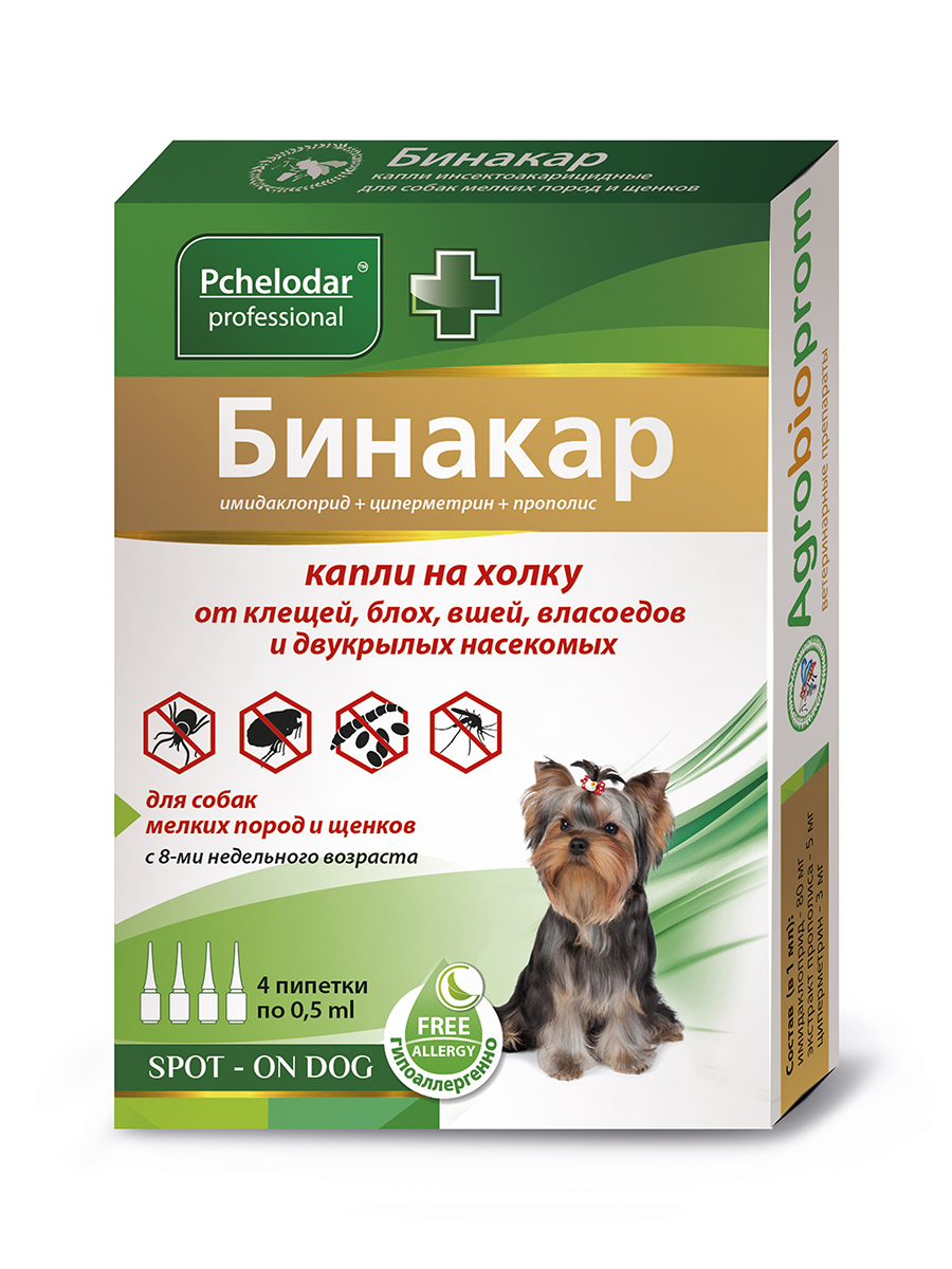 —Бинакар для мелких пород собак капли на холку от блох и клещей 0,5мл/4пип (1 пип на 5 кг)