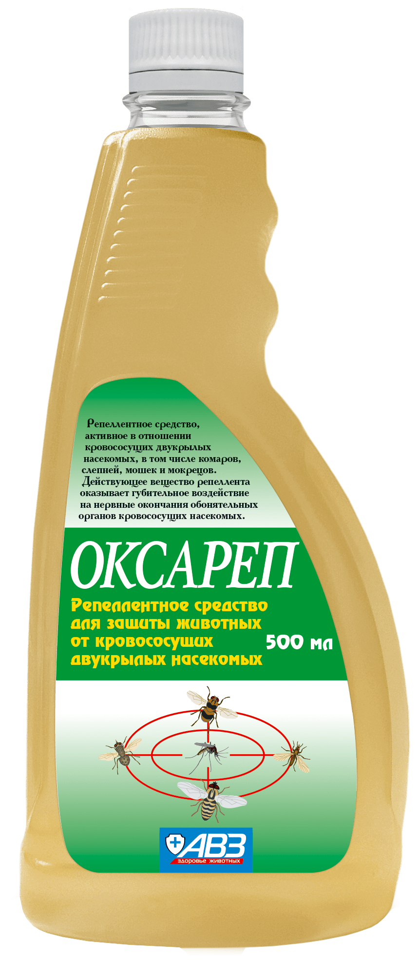 "Оксареп" является репеллентным средством контактного действия, активен в отношении кровососущих двукрылых насекомых, в том числе комаров, мошек, мокрецов и слепней.