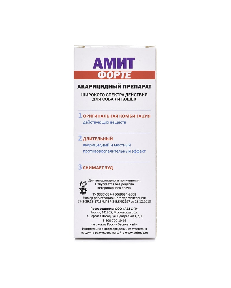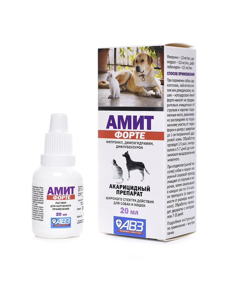 Амит Форте раствор (демотекоз,саркоптоз ,нотоэдроз,отодектоз,хейлет.)