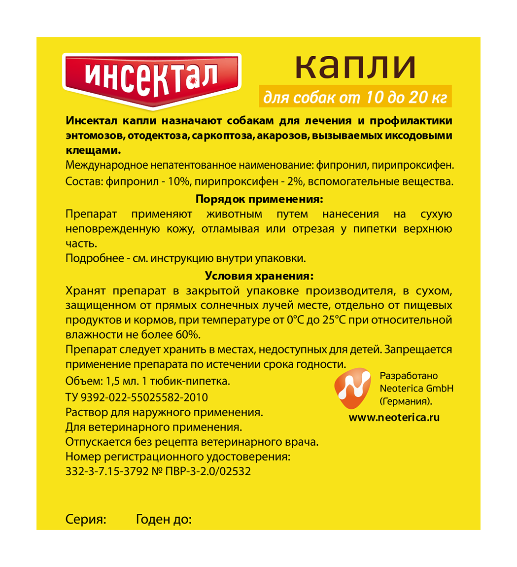 Инсектал Капли для собак 10-20кг