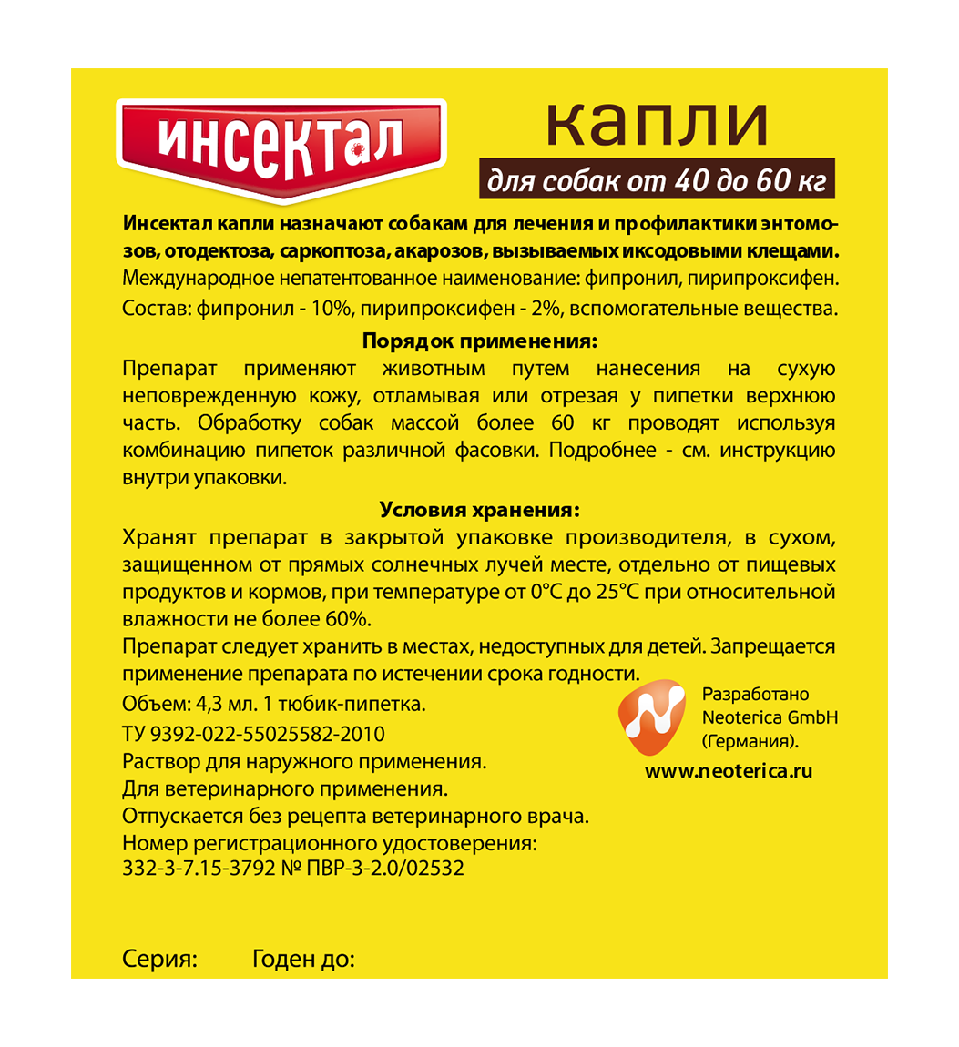 Инсектал Капли для собак 40-60кг