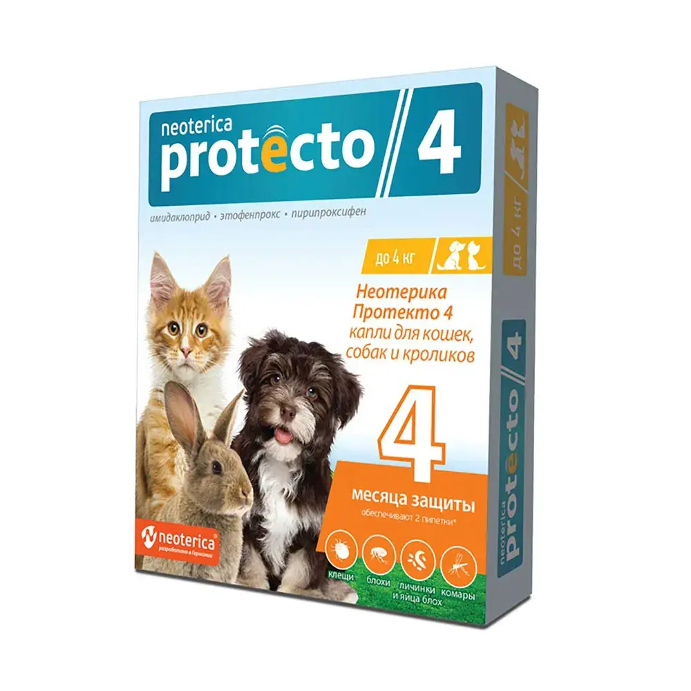 Неотерика Протекто Капли для кошек,собак,кроликов до 4 кг, 2пип