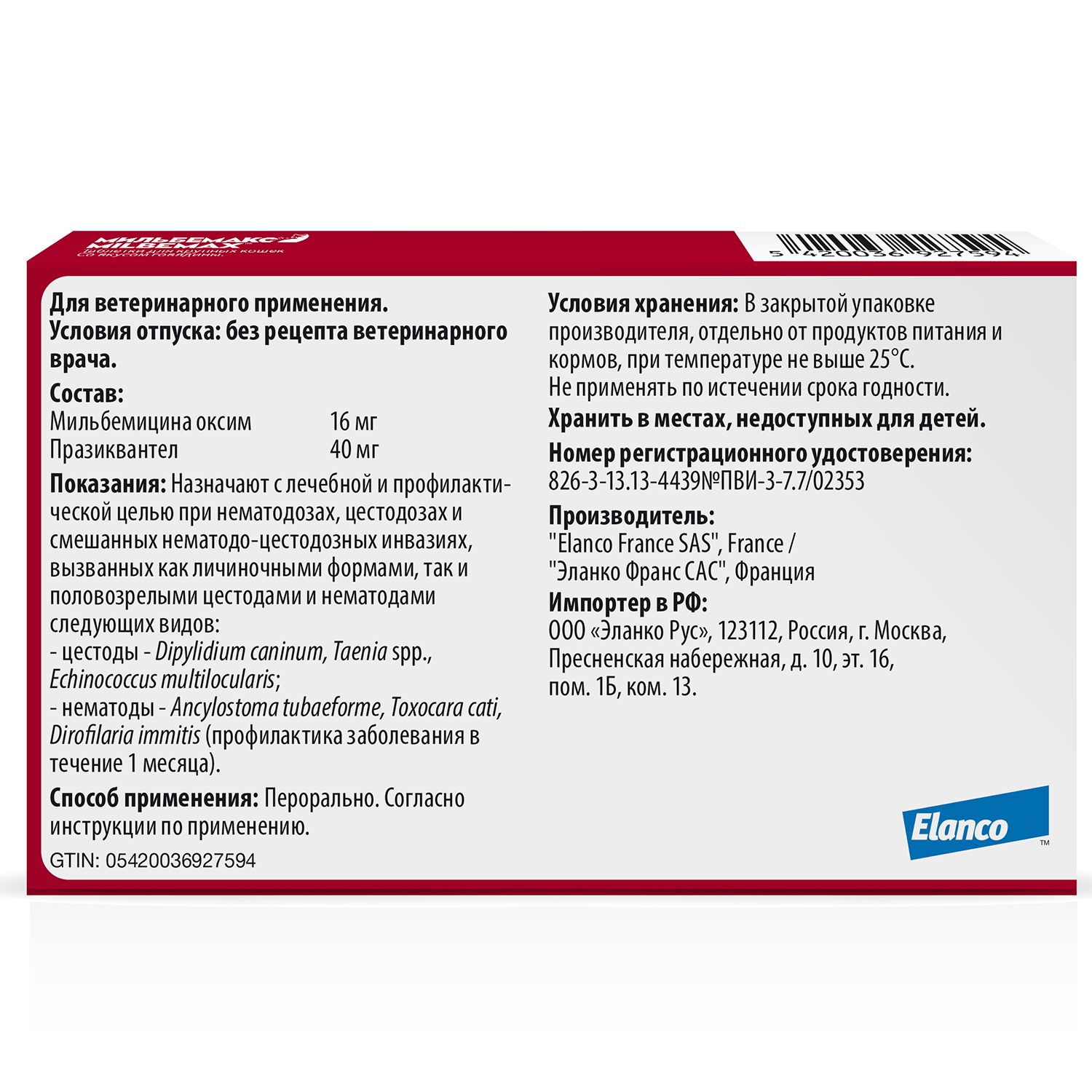 Мильбемакс® – антигельминтик широкого спектра, действующий на различные виды круглых (токсокары, анкилостомы, дирофилярии) гельминтов и различные виды ленточных (дипилидии, эхинококки, тении) гельминтов.Способ применения: