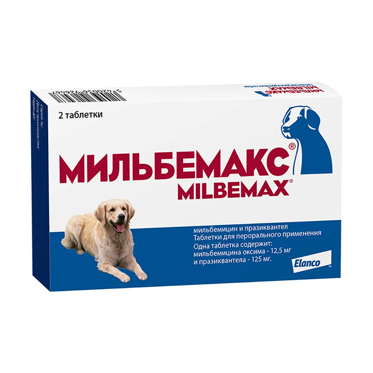 Мильбемакс для взрослых собак 2таб (антигельминтик) годен до 30.06.26г