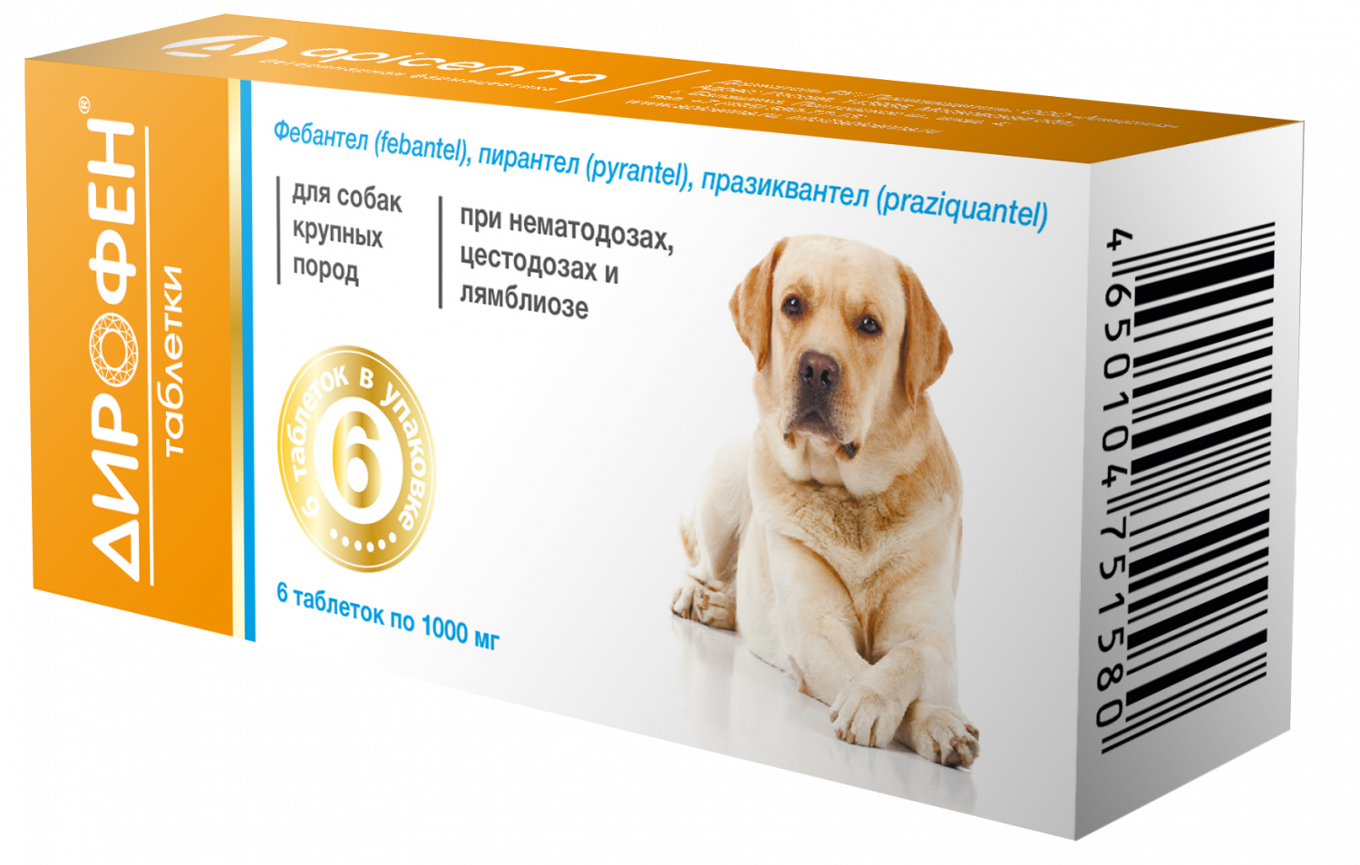 Дирофен таблетки для собак крупных пород, 6*1000мг