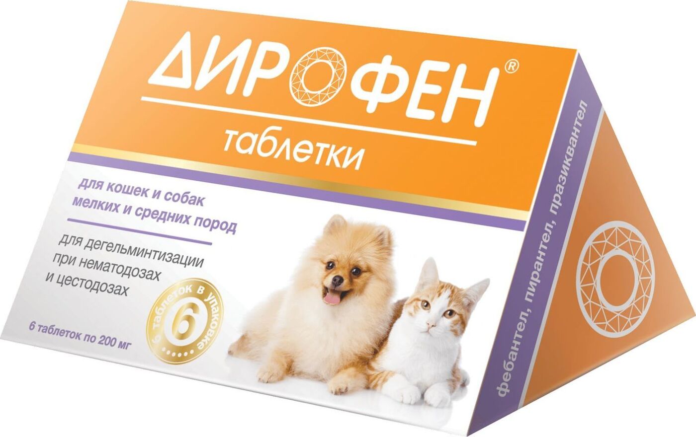 Дирофен таблетки для кошек и собак мелких и средних пород 6*200 мг
