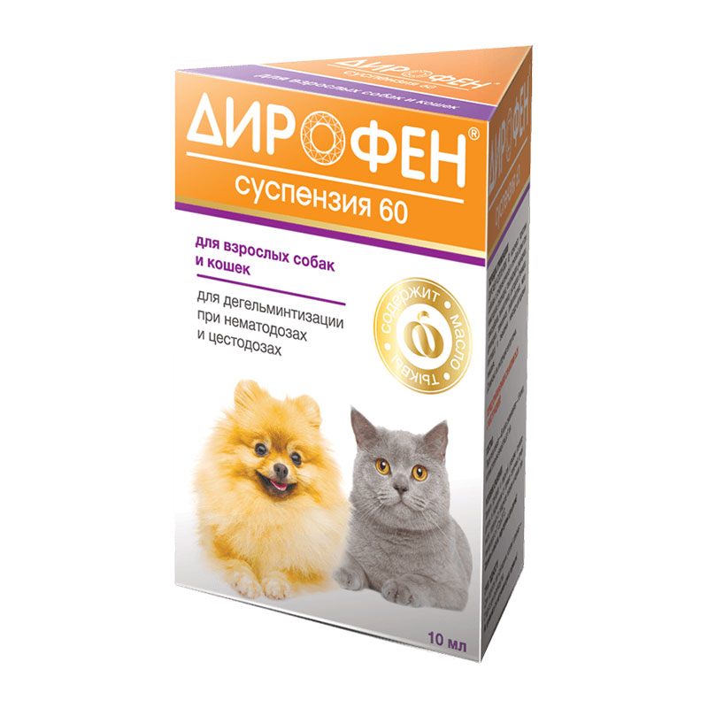 Дирофен суспензия 60 для взрослых собак и кошек, 10 мл
