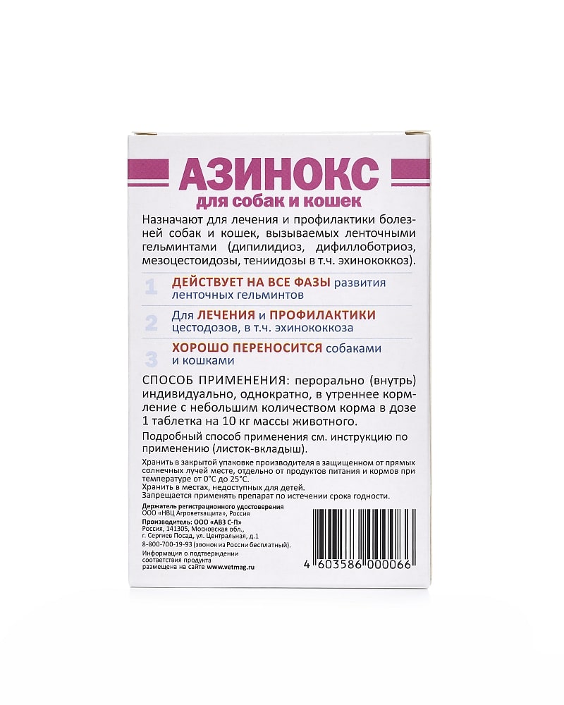 —Азинокс (6 тб) антигельминтный препарат для кошек и собак