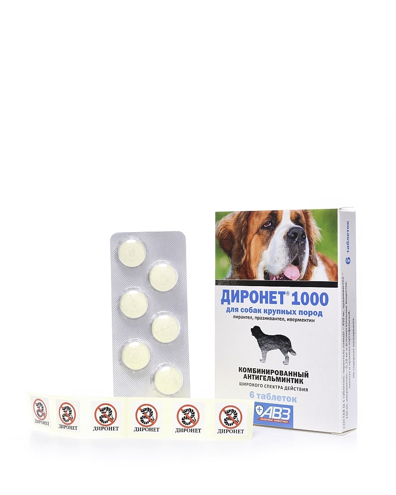 ДИРОНЕТ 1000 для собак крупных пород 6 таб (1 таб на 30кг)