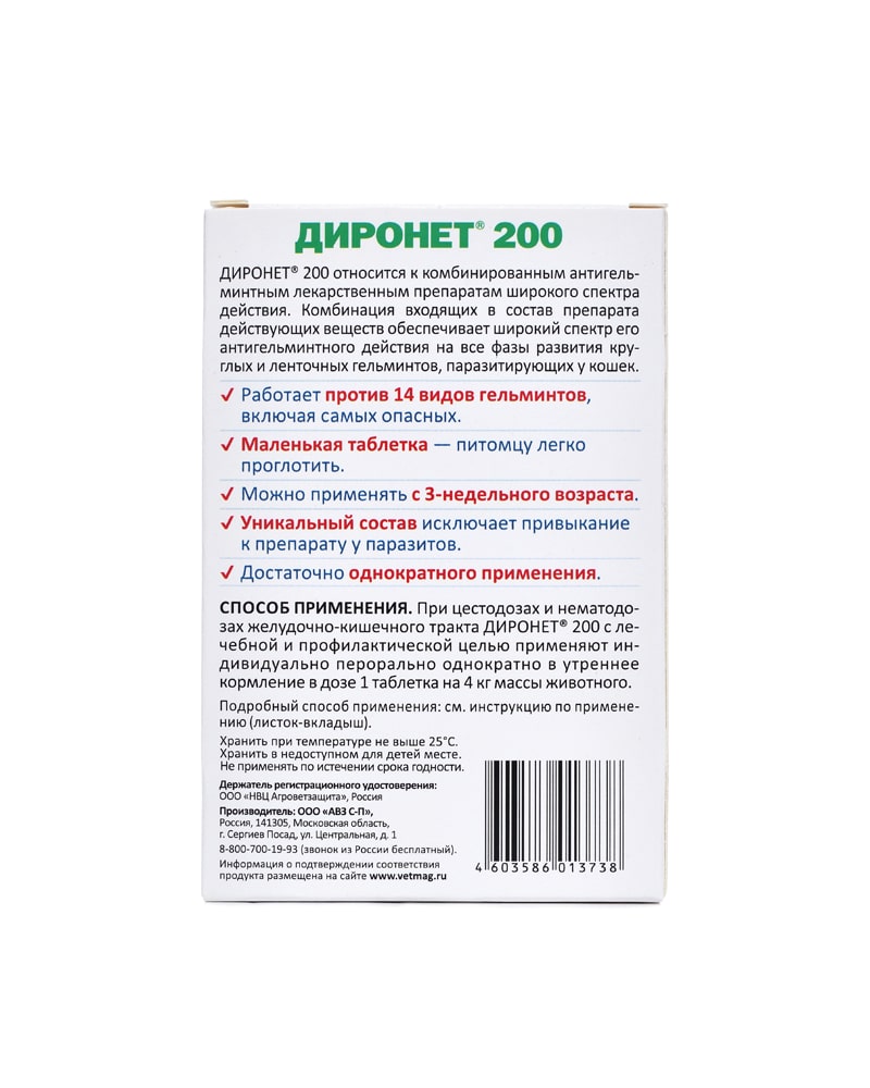 ДИРОНЕТ 200 для кошек и котят 2таб
