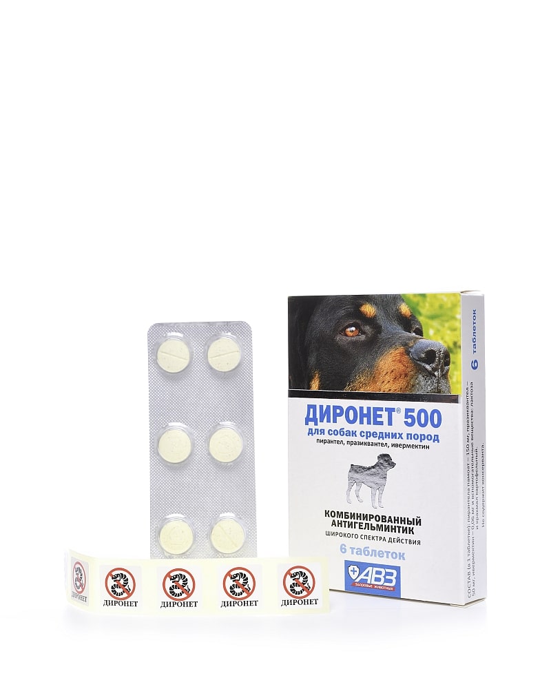 ДИРОНЕТ 500 для собак средних пород 6таб (1таб на 10 кг)