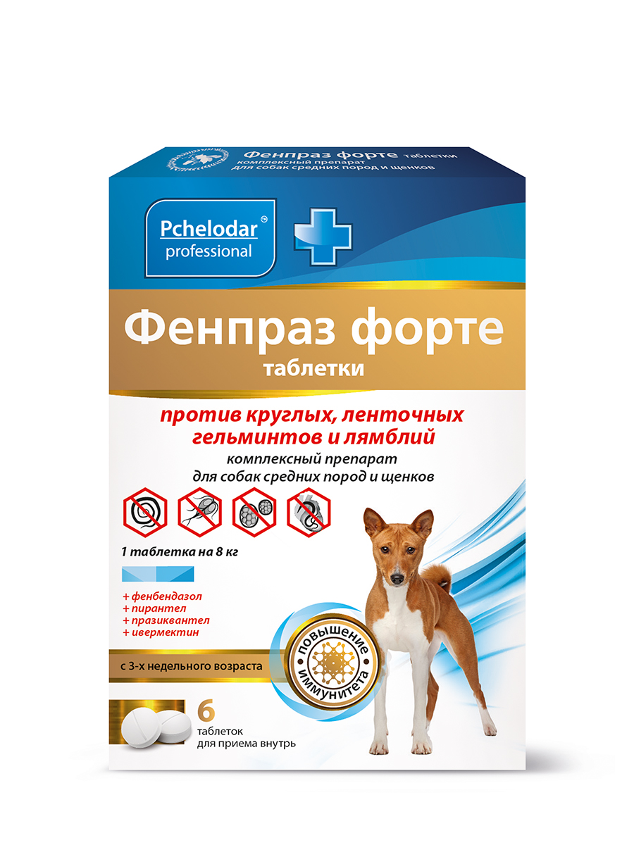 —Фенпраз форте 6т для собак средних пород и щенков. (1таб. на 8кг)