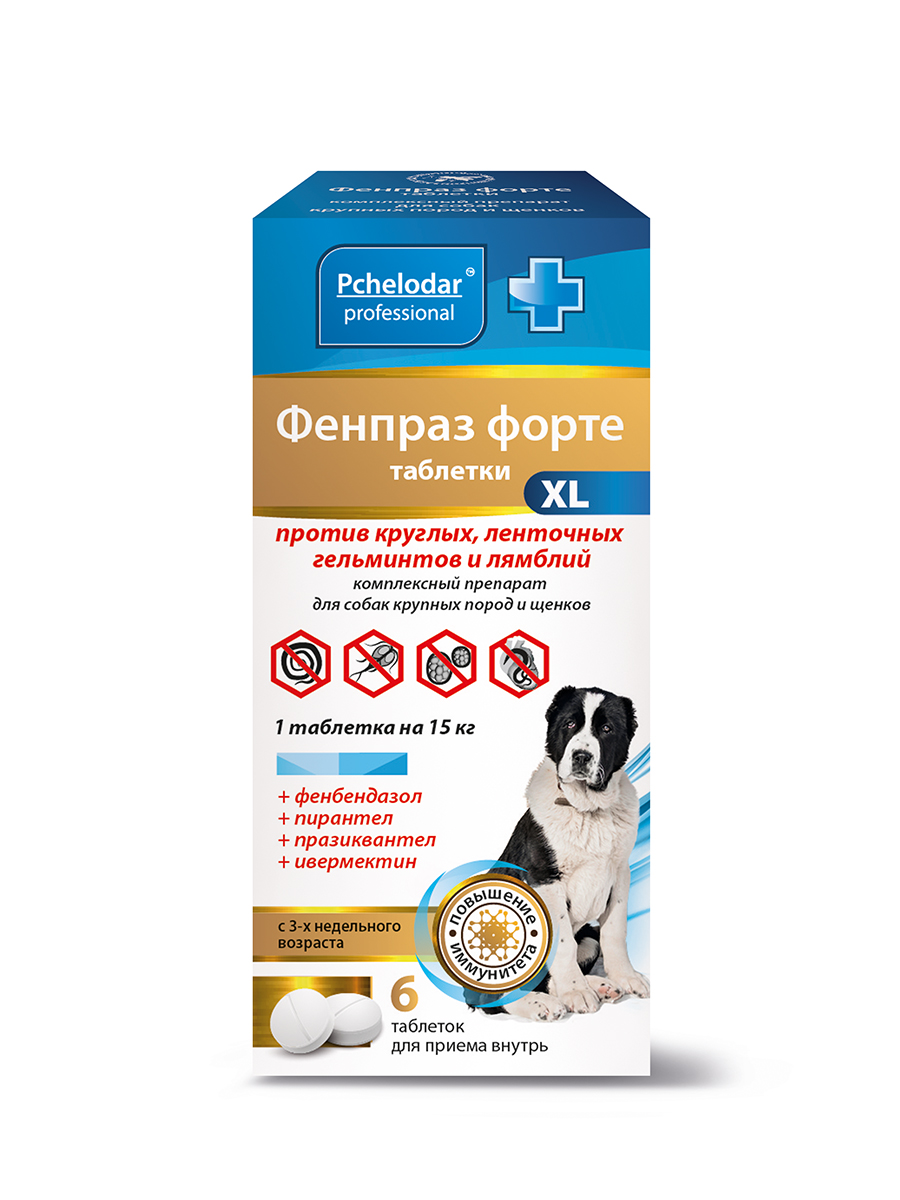 —Фенпраз Форте XL для соб. круп. пор. 6 таб. (1таб. на 15 кг) (фенбендазол, пирантел, празиквантел)