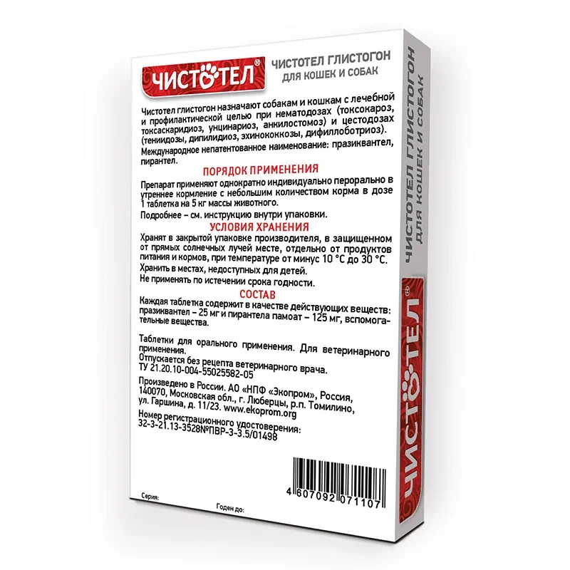 —Чистотел Глистогон таблетки для кошек и собак 6шт (1таб*5кг)
