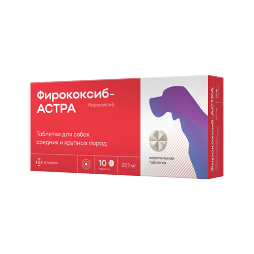 Фирококсиб-АСТРА – это нестероидный противовоспалительный препарат (НПВП), который используется для лечения боли и воспаления у собак, содержащий фирококсиб. Таблетки можно разделить на 4 части, что позволяет точно дозировать препарат в соответствии с весом и потребностями питомца.