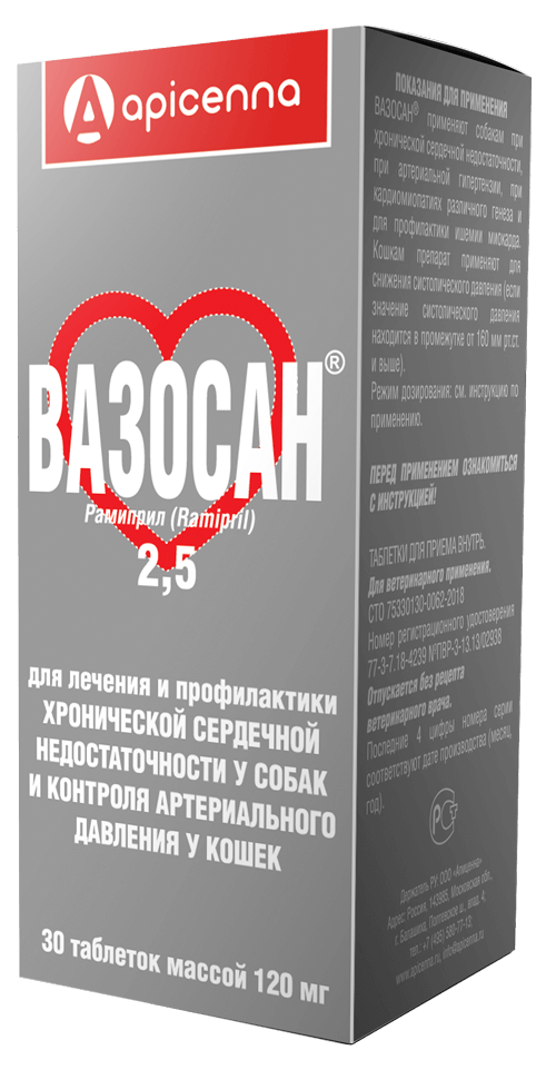 —Вазосан 2,5мг 30таб*120мг сердечное для кошек и собак