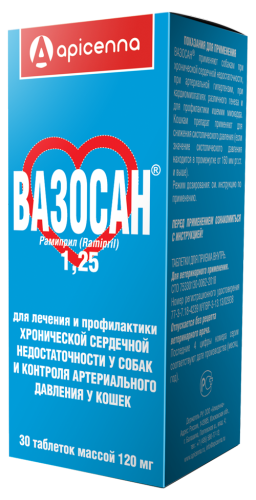 —Вазосан 1,25мг 30таб*120мг сердечное для кошек и собак