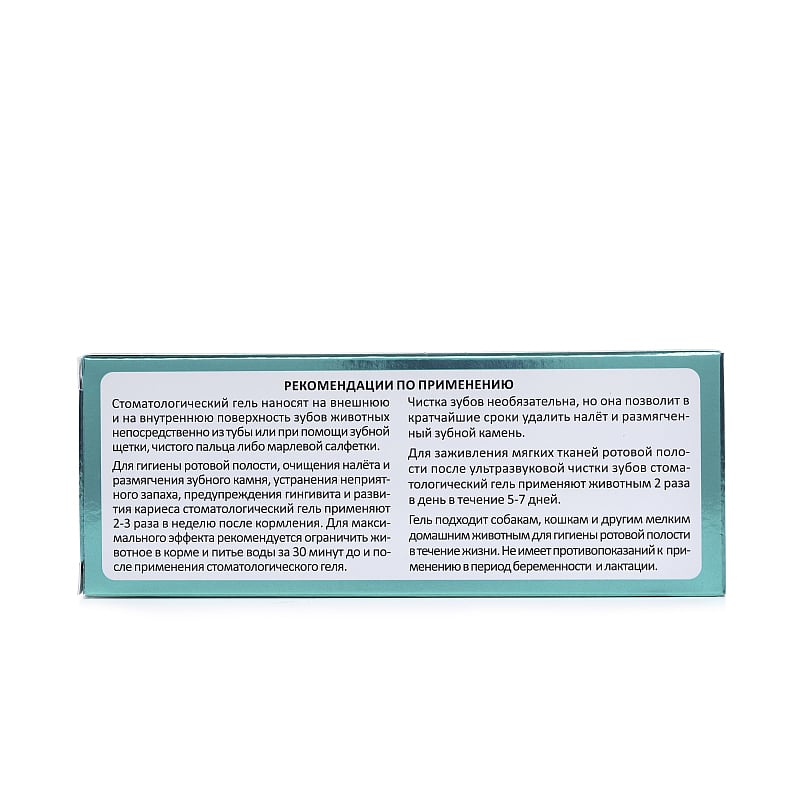 Стоматологический гель наносят на внешнюю и внутреннюю поверхность зубов животных непосредственно из тубы или при помощи зубной щетки, чистого пальца либо марлевой салфетки в следующих дозах: