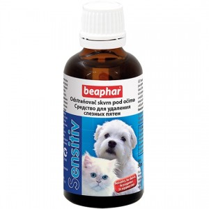 Средство Sensitiv Beaphar для удаления пятен от слез под глазами собак и кошек. Появление темных, непривлекательных пятен под глазами у собак и кошек вызвано слезоотделением и особенно эти пятна заметны у животных светлых окрасов. Средство нежно и бережно удаляет неприятные следы под глазами даже у животных светлого окраса. Активное вещество Sensitiv Beaphar (боракс) входит во многие гомеопатические препараты, что доказывает безопасность средства для ухода за красотой и здоровьем домашнего животного.