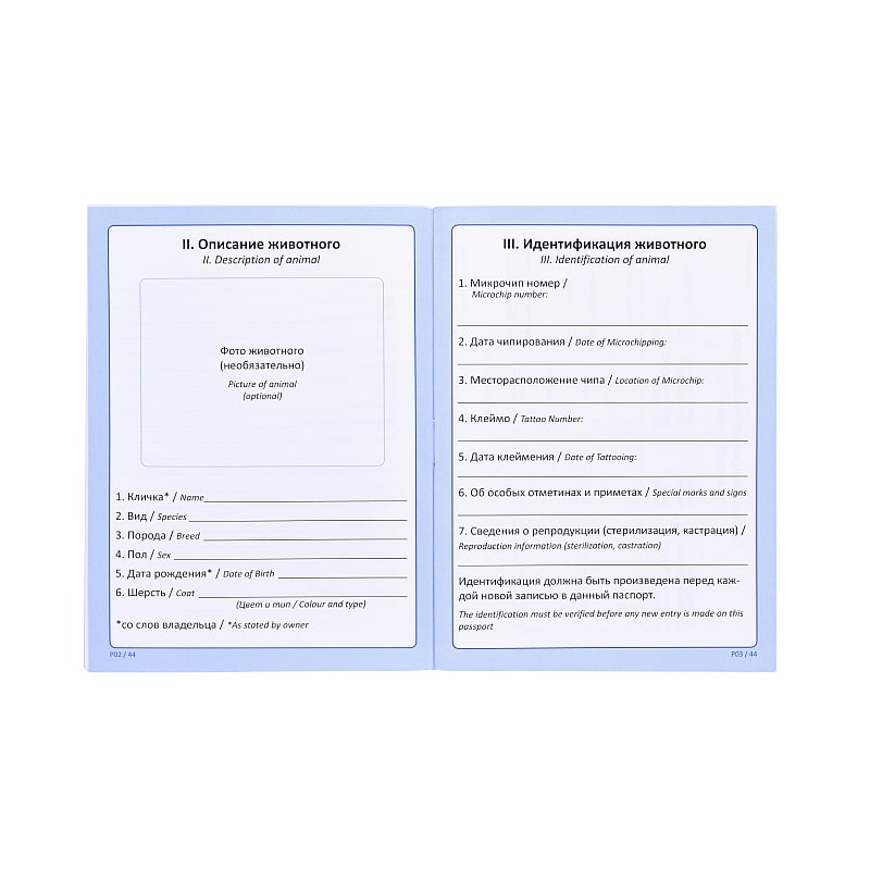 В Международном ветеринарном паспорте животного увеличено количество страниц до 44-х для записей о вакцинациях и дегельминтизациях.