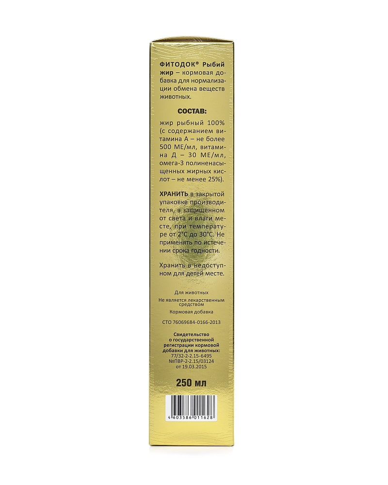 «Фитодок® Рыбий жир» способствует нормализации обмена веществ, улучшает рост и развитие молодняка, повышает устойчивость организма к заболеваниям, участвует в регулировании обмена кальция и фосфора в организме и процессах формирования костной ткани.