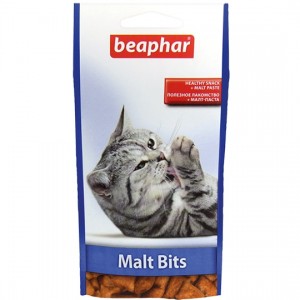 Лакомства для кошек Beaphar - подушечки "Мальт-Битс" с мальт-пастой для очищения кишечника, количество 80 штук.
